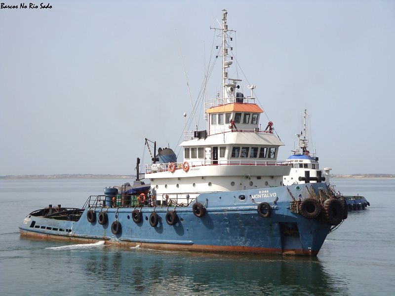 Rebocador  "Mitrena" a navegar na baía de Sesimbra. Foi construído nos Estaleiros de São Jacinto no ano de 1975 para a Lisnave. Hoje é propriedade da Rebonave.